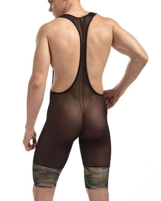 MIBOER MEN’S CAMOUFLAGE SHEER JUMPSUIT
