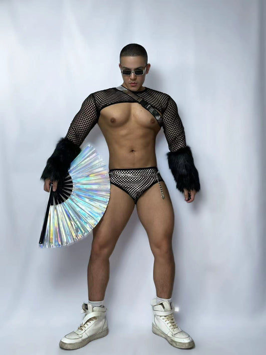 MESH FULL-SLEEVE FUR CROP TOP MALE GOGO COSTUME