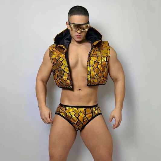 GLITTER VEST AND BRIEFS MALE GOGO COSTUME