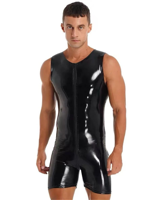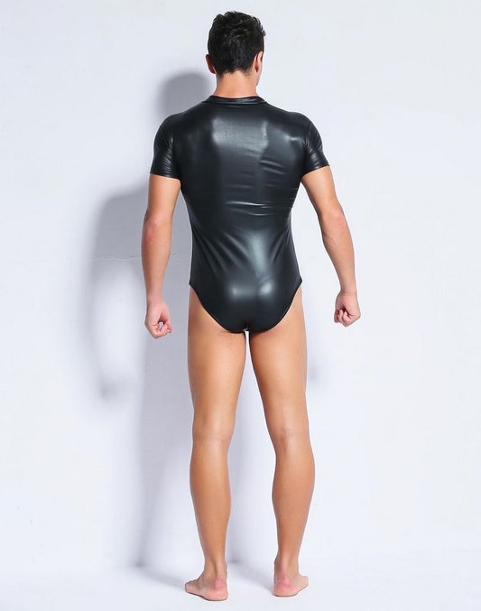MEN’S LEATHER ZIPPER WRESTLING BODYSUIT