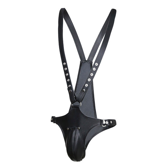 MEN’S ZIG ZAG STRAPS LEATHER BODYSUIT
