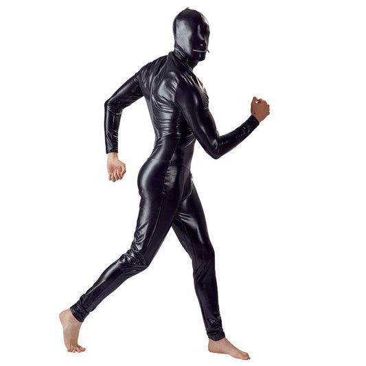 MEN’S FULL-BODY PU LEATHER ZIPPER JUMPSUIT