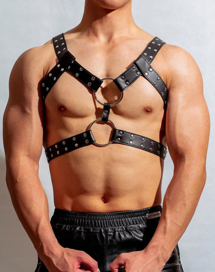 DM MEN’S LEATHER AND RIVETS CHEST HARNESS