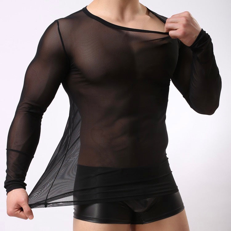 Introducing men's ice silk full-sleeve mesh tank top.Made from high-quality nylon material.Ideal for bedroom lingerie wear, sportswear, gym wear, gogo performance wear, lingerie date night, etc. Available in 2 colors.